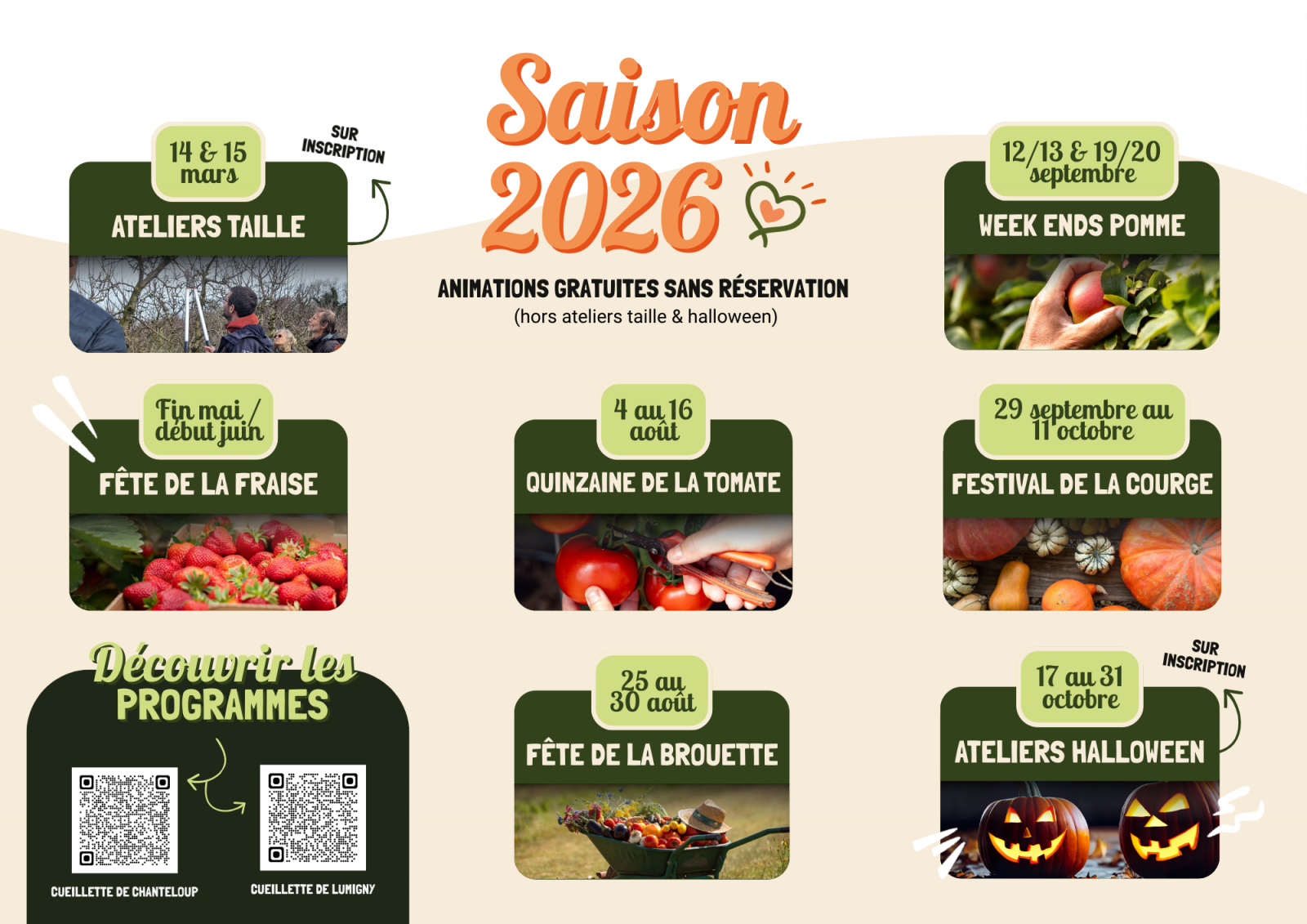 Nous vous donnons rendez-vous à travers de nombreux rendez-vous immanquables à la cueillette !